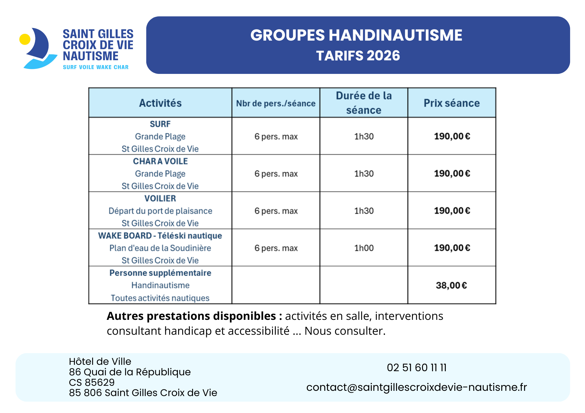 Glisser, allongé ou debout sur une planche en ressentant l’énergie de la vague, en harmonie avec les éléments. Fort d’un encadrement multi-activité et adapté, SAINT GILLES CROIX DE VIE NAUTISME propose un accès handisport surf tout au long de l’année. Installations adaptées et pédagogie rapprochée.